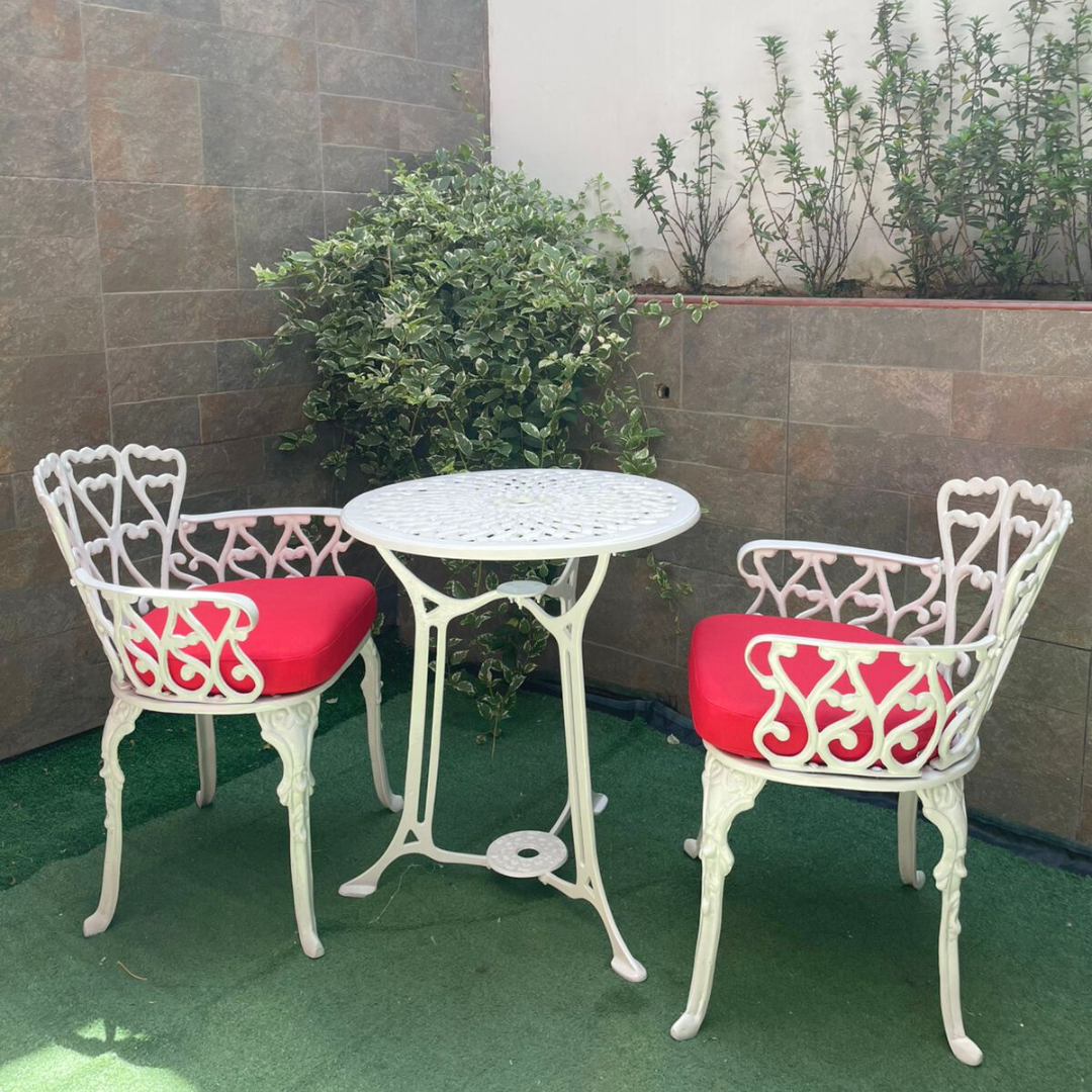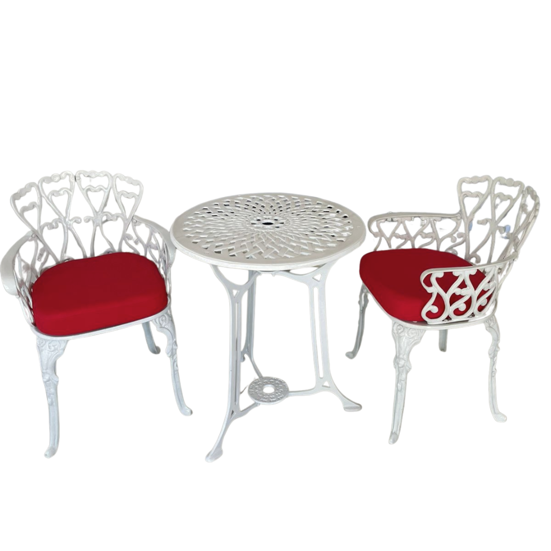 Set de Jardín en Aluminio Fundido – 2 Sillas con Brazos + Mesa Redonda